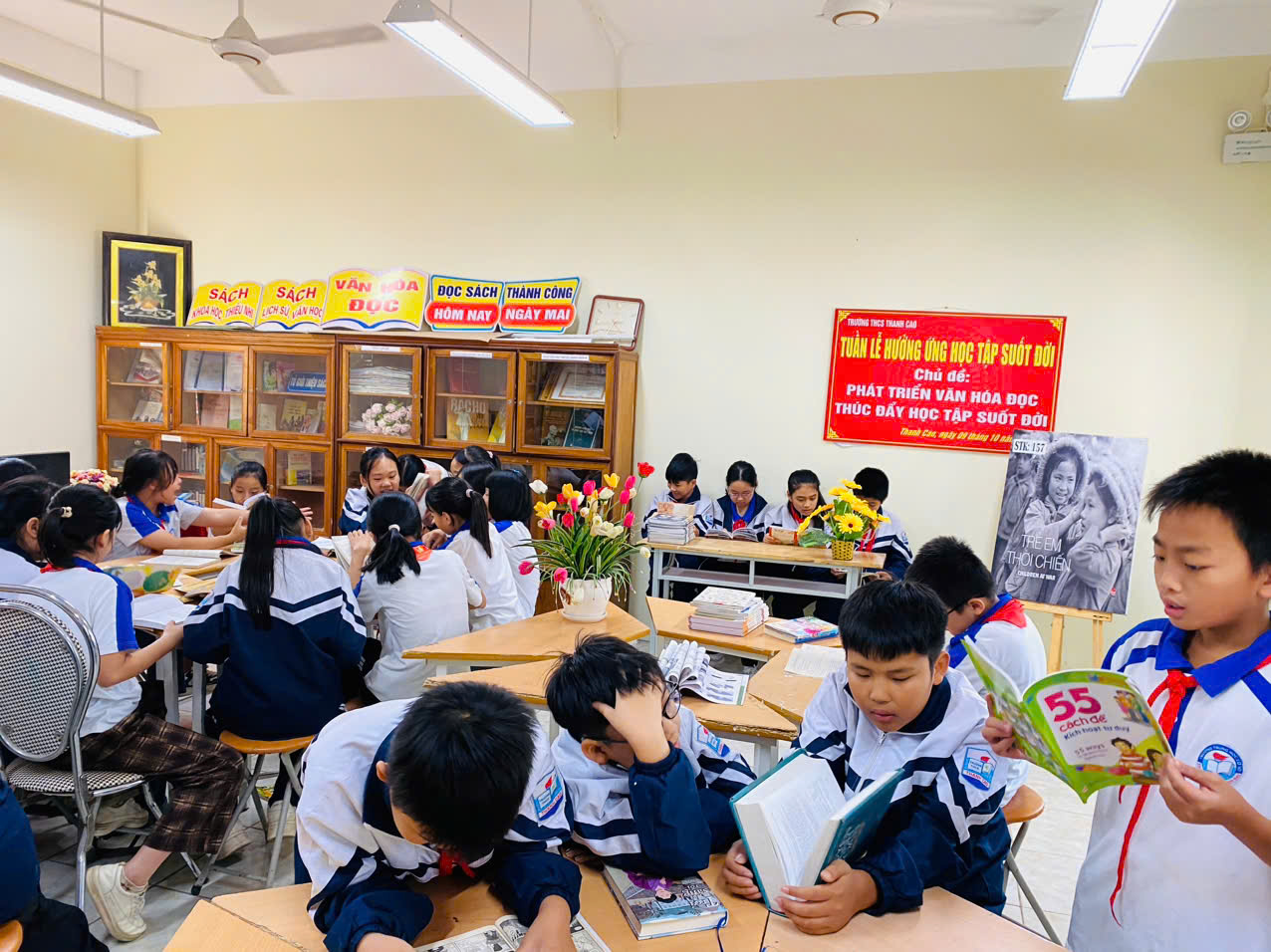 Dưới đây là 1 số hình học sinh tham gia đọc sách tại thư viện nhà trường.